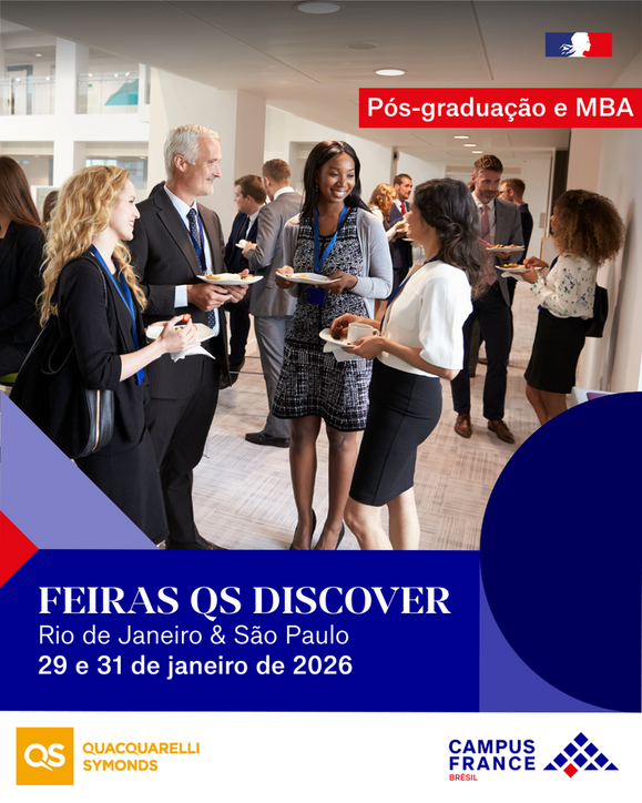 Quer saber mais sobre as formações de Master e MBA na França? No final de janeiro, a equipe do Campus France Brasil vai participar da feira internacional QS Discover MBA & Master, organizada pela empresa britânica QS Quacquarelli Symonds.