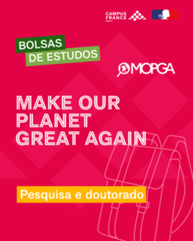 Os ministérios franceses da Europa e Assuntos Estrangeiros (MEAE) e do Ensino Superior e da pesquisa (MESRI), em parceria com o Campus France Paris, lançam mais uma vez as chamadas a candidaturas do programa de bolsas “Make Our Planet Great Again (MOPGA)”. A finalidade do programa é apoiar e acolher os estudantes estrangeiros que desejam realizar pesquisas em nível de Pós-Doutorado em instituições francesas, nas seguintes áreas: